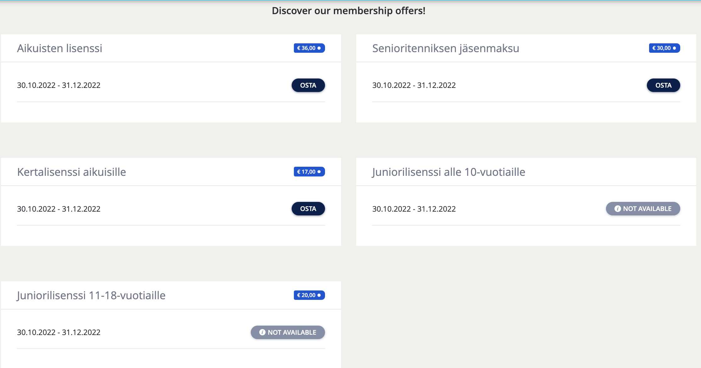 Kilpailulisenssi on aina voimassa yhden kalenterivuoden ja sen pystyy ostamaan TennisÄssän omasta pelaajaprofiilista.