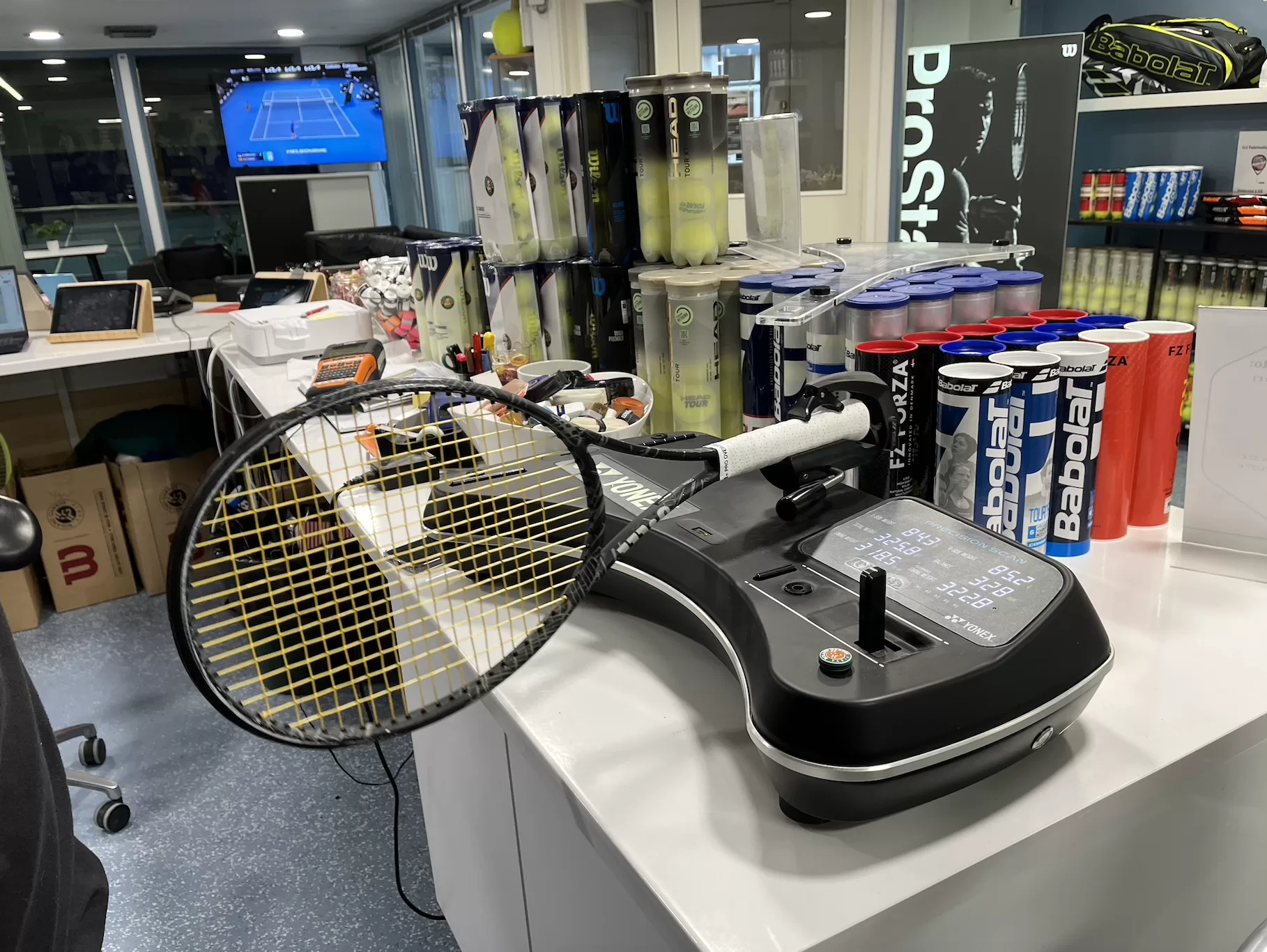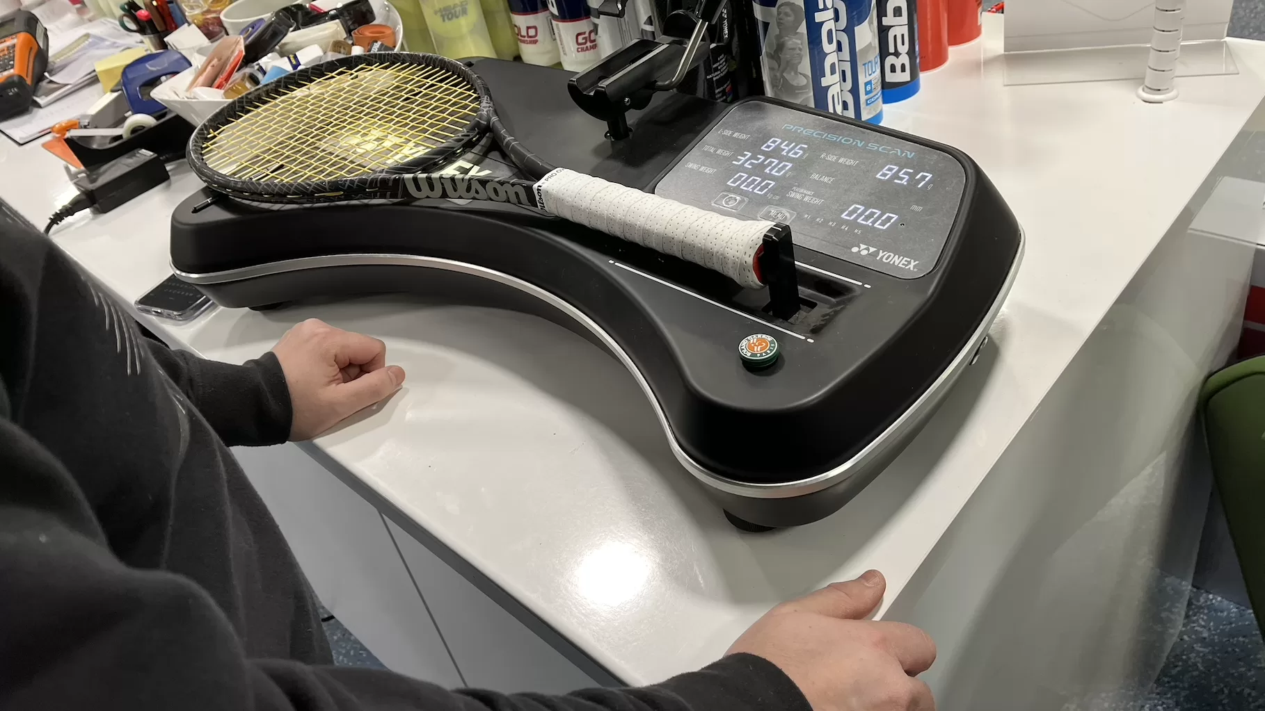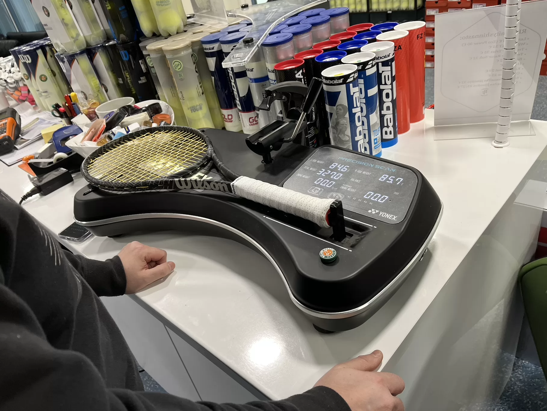 Tennismailojen kustomointi alkaa mailan punnitsemisella siihen tarkoitetulla laitteella. Laitteesta saadut tiedot kertovat mailan painon ja tasapainopisteen.